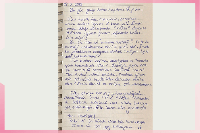 Son olarak her şey yoluna girdiğinde, düzeldiğinde ‘neden’ ve ‘keşke’ kelimeleri ile baş başa kalmamak için lütfen beklemeyin, ertelemeyin. Bize lazım olan güç aslında aslında tam içimizde! Tabi ki bu süreçte elimi hiç bırakmayan eşime de çok şey borçluyum.