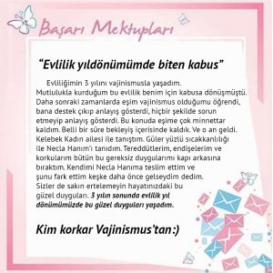 Evliliğimin 3 yılını vajinismusla yaşadım. Mutlulukla kurduğum bu evlilik benim için kabusa dönüşmüştü. Daha sonraki zamanlarda eşim vajinismus olduğumu öğrendi, bana destek çıkıp anlayış gösterdi, hiçbir şekilde sorun etmeyip anlayış gösterdi. Bu konuda eşime çok minnettar kaldım. Belli bir süre bekleyiş içerisinde kaldık. Ve o an geldi. Kelebek Kadın ailesi ile tanıştım. Güler yüzlü sıcakkanlılığı ile Necla Hanım’ı tanıdım. Tereddütlerim, endişelerim ve korkularım bütün bu gereksiz duygularımı kapı arkasına bıraktım. Kendimi Necla Hanıma teslim ettim ve şunu fark ettim keşke daha önce gelseydim dedim. Sizler de sakın ertelemeyin hayatınızdaki bu güzel duyguları. Ve 3 yılın sonunda evlilik yıl dönümümüzde bu güzel duyguları yaşadım. Şükürler olsun Rabbime ve daha sonra Ncela Hanım’a. Kim korkar vajinismustan. Çok çok çok teşekkür ederim Necla Hanım size..