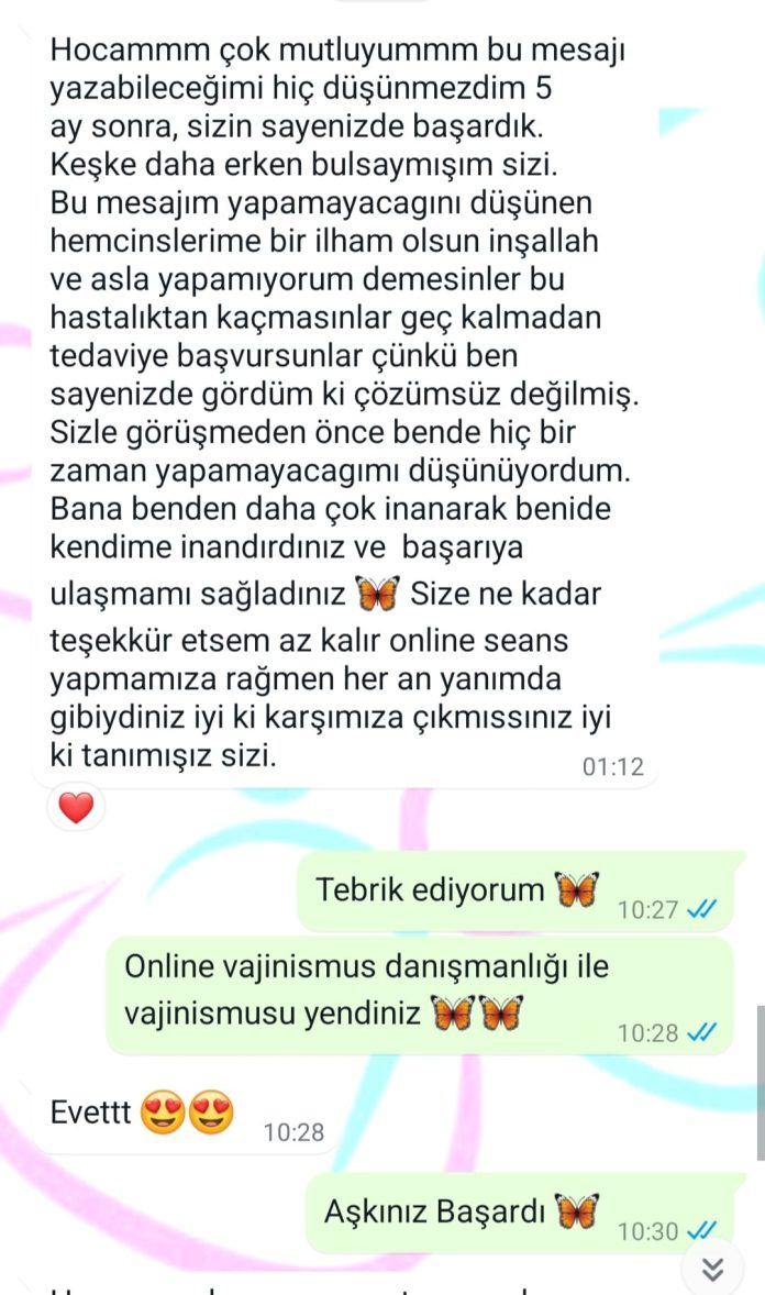 Başarı HikayeleriVajinismusWhatsapp Mesajları Hiçbir zaman yapamayacağımı düşünüyordum Tarafından Kelebek Kadin - 0 95
